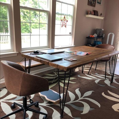TIMELESS DESIGN - This dining table boasts an industrial, mid-century design. A teak-stained acacia wood table top is supported by four sets of iron hairpin legs with a rustic metal finish. It also features live edges and gorgeously textured wood.