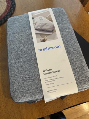 Carry your laptop with you wherever you go in this Zip Laptop Case from Brightroom™. Designed with a neoprene shell, this laptop case provides protection from bumps or scratches. The main zippered compartment can hold an up to 12-inch laptop, while the front zip pocket lets you stash small accessories. Featuring a knitted design in a light gray hue, it's sure to add classic style to your everyday routine.