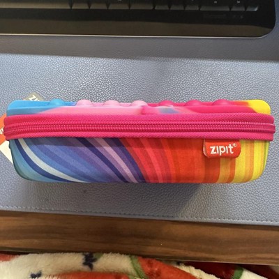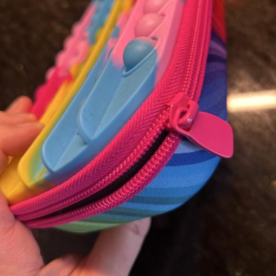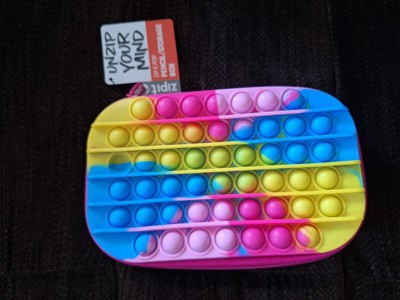 #just_zipit https://www.target.com/p/zip-pop-pencil-box-for-kids-fidget-storage-box/-/A-92508772?preselect=92418812#lnk=sametab This pencil case is the perfect size for pens, colored pencils or regular number two pencils. It's colorful and the material feels sturdy. The zipper is easy to close and also undo. I don't like how flimsy the top part is with the Popits, mostly because when you push them down, many of them pop back up simply because of the flexing of the material.