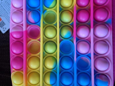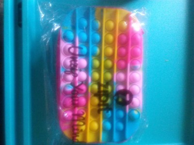 We received the rainbow pencil box free for review. It is very colorful and pleasing to the eye. The zipper functions the way it needs to. Easy to pull it around the box. The bubbles are easy to pop, but the top does indent down, so you have to hold it a certain way to pop them. This box has a lot of space for pens, pencils, markers and crayons. The inside is soft. Overall, a great box for storage, but would make the popper top thicker, so it doesn't bend so much.