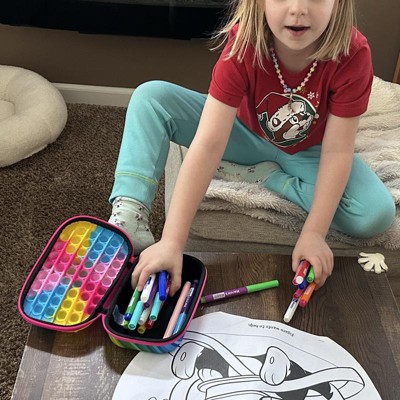 [This review was collected as part of a promotion.] My daughter loves coloring with these markers. Now, she has a fun marker case that is a rainbow with pop it’s on it. She is in heaven. She can find which markers she wants faster. It has a sturdy zipper on it and pop it’s to keep her moving right along. I’m impressed with the quality of this item. I think it will wipe up easily and be used for a long time. Very happy with this purchase. I received an incentive to write this review.