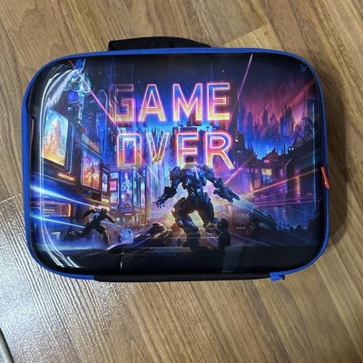- This lunch bag for boys features an epic lenticular 3D "Game Over" design set in a vibrant, neon-lit futuristic cityscape that will captivate any gaming enthusiast.
