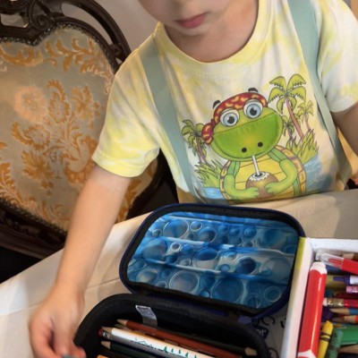 [This review was collected as part of a promotion.] I was so excited for this pencil case. My son’s first big boy pencil case. And he loved it! I did not realize the top is a fidget toy popper! That’s so smart and resourceful! Both of my kids noticed that right away and immediately fell in love with it. My son was so excited to transfer all of his pencils into it. He is 4 and did not have any trouble zipping or unzipped it. I received an incentive to write this review.
