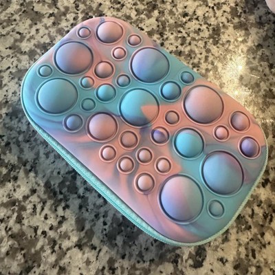 [This review was collected as part of a promotion.] This colorful pencil pouch in purple pick and blue rainbow tie dye like patter also has the fidget bubbles for extra entertainment. Inside is a felt material with a sturdy bottom. Lots of room for any type of pencils pens markers or all three. Could be used to store kids little toys or trinkets. It’s really very cute and well designed. I can’t imagine a kid who wouldn’t enjoy it. My daughter immediately loved it. And the price is comport other pouches. I received an incentive to write this review.