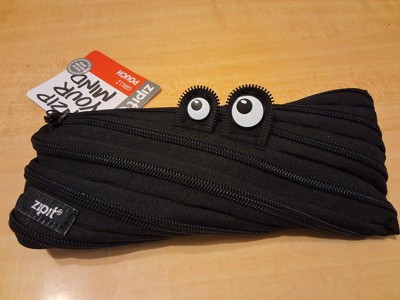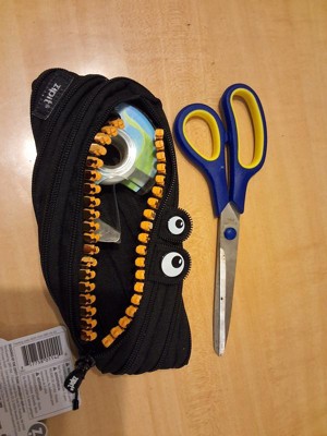 This pencil case is cute and durable, perfect for storing essentials on the go. The outside material is lined with zippers to give it a quality firm feel. The eyes and inner zipper mouth are both cute and quality - but they don't get in the way like you may expect them to! The case fits tape, mini-scissors, and pens/pencils comfortably, but not quite large enough for full-sized scissors. Perfect for school, work, or travel.