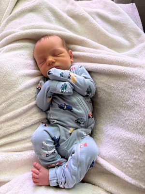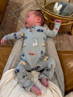 [This review was collected as part of a promotion.] Love the zippered pjs for my babies! I always choose rompers over footies for longevity. The construction print is one of our favorites! My 3 week old is 9.5 lbs and wearing a size 0-3 month