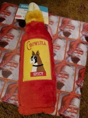 This hot sauce dog toy is adorable and soft. My dog loves tugging on his toys so the shape of this is perfect for that. The print on the bottle is clever and especially cute considering my dog is part Chihuahua.