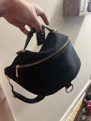 What a beautiful fanny pack! Pleasantly surprised! It is super high quality nylon. Love the gold hardware and all the zip pockets! My fav part would have to be the long bag strap! Its long enough to wear as a shoulder bag and can be adjusted to wear as a cross body too! Its perfection and looks more expensive than it is! I also really like the top handle it has! So happy to find this!