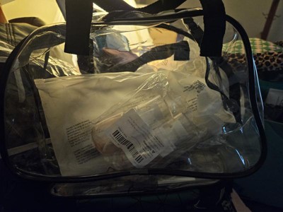 [This review was collected as part of a promotion.] This clear stadium bag is extremely versatile and fits everything you need. It has a zipper at the top and two black handles to carry it. I look forward to using this when attending concerts or baseball games!