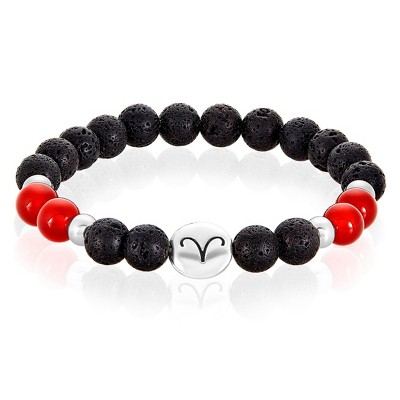 Men's Zodiac Lava and Agate Stone Bead Stretch Bracelet - West Coast Jewelry