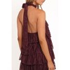 • A: The dress features a halter neckline with a tie closure for a secure fit.