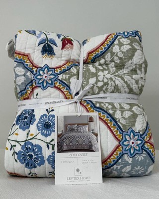 - ZOEY QUILT: A ornate trellis framing beautiful floral bouquets quilt, part of the Levtex Home Zoey collection. Used by itself, as a layering piece or as a bedspread, this quilt is extremely versatile.