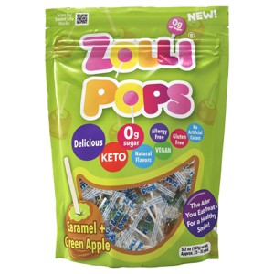 - • Zollipops Caramel & Green Apple lollipops are the delicious healthy treat that everyone can enjoy! delicious, vegan, keto, allergy friendly, diabetic friendly, sugar free, dye free candy: Zollipops offers a variety of delicious that are made with erythritol, stevia and other smile friendly natural ingredients that are help clean your teeth.