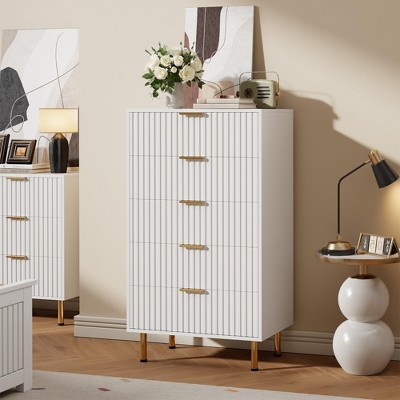 Zstar 47" Tall Fluted 5 Drawer Dresser for Bedroom, Deep Drawers