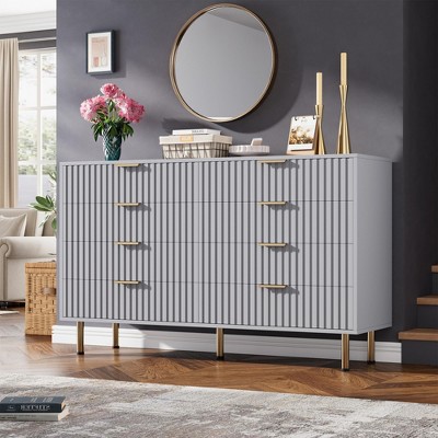 Zstar 55" Fluted 8 Drawer Dresser for Bedroom, Deep Drawers