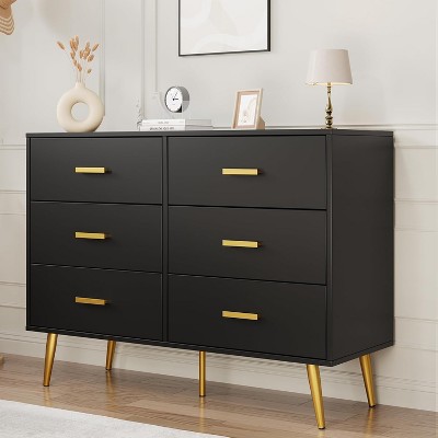 Offers a chic design in black, pink, or white, accented by gold handles and textured wood panels to complement any decor.
