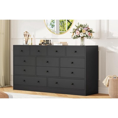 Zstar Black 8 Drawer Double Dresser for Bedroom, Living Room, Entryway, Hallway