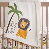 Wrap your baby up in warmth and comfort with the Levtex Baby Zuma Blanket. Made of an adorable soft grey plush fabric , this blanket features a beautifully embroidered sentiment with the words DREAM BIG LITTLE ONE with an appliqued lion and palm tree on a cream soft plush This plush blanket measures 30 x 40in. and is machine washable for easy maintenance.