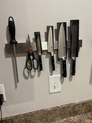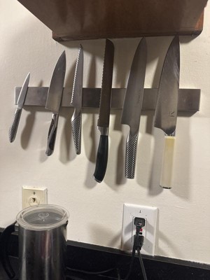 [This review was collected as part of a promotion.] I’ve been a chef, all my life and this out of all the kitchens I’ve worked in this is the best magnetic bar to display and hold all of your knifes. You can mount it anywhere and it’s great because there’s no fumbling around with drawers and getting stuff on drawer. Handles just said you can grab a knife. Your knife is always mounted right on the wall. I love this thing. You’ll also know the quality of it when you go to pick it up and realized it’s not just a piece of stainless steel. The thing is filled from end to end with solid magnets.
