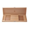 - Slotted wooden case stores knives neatly and safely