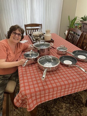 We love this beautiful cookware set! We have owned a few sets in our lifetime and this is our favorite!!! My husband knows this set will improve my cooking because of quality performance and how great looking they are to encourage and inspire not only me but him!!!!