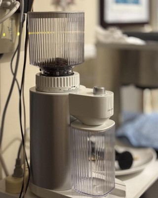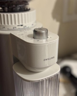 I’ve had this grinder (silver & white) for about a week and am happy with it thus far! I really appreciate how I could change the ground size for the full-spectrum of coffee preparations. In my case, I’m using it primarily for a home espresso machine (for which I kind of wish I had a Zwilling choice) and was able to test out the marked range of espresso sizes for my situation. The design is elegant, space-saving, and thoughtful! It was also interesting to discover the little compartment beneath grounds container that houses the cleaning brush!