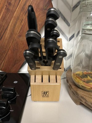 [This review was collected as part of a promotion.] Really like these knives! I have a few Zwilling steak knives that I love, so I decided to purchase this block with additional knives. Really like the weight of the knives and the quality of the blades. Very pleased!