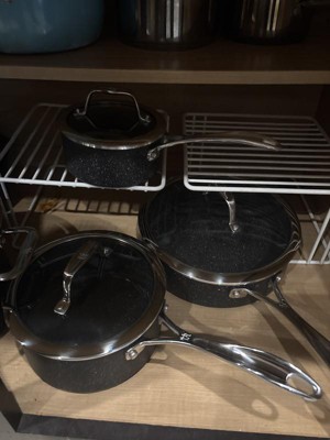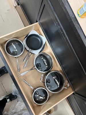 - Set includes 8-inch fry pan, 10-inch fry pan, 1.5-quart saucepan w/lid, 2.5-quart saucepan w/lid, 3-quart sauté pan w/lid, 5-quart Dutch oven w/lid