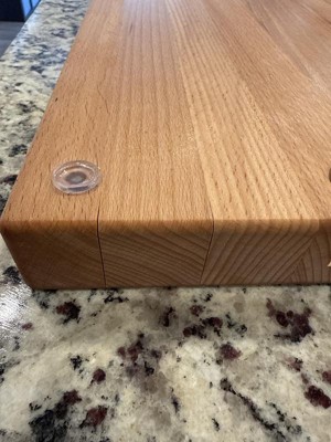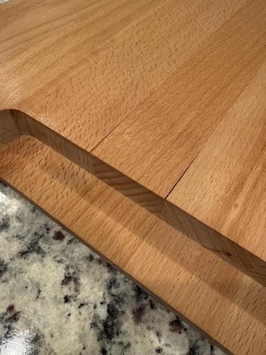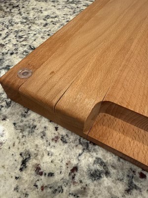 This cutting board is well made. The Beechwood is the perfect texture for using with quality knives. I like the large size. The hand holds allow for easy secure carrying.