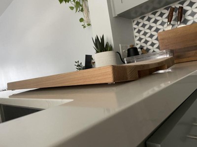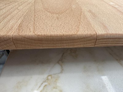 Had this on our wedding registry. Loved the look of it - but the board started bowing and split within a few weeks. We were really careful with washing it - never in the dishwasher. So disappointing as I've never had such an expensive cutting board so very surprised by the poor quality. The company did offer to replace it which was nice but I don't want the same one as I expect the same issues with quality. Would definitely avoid.