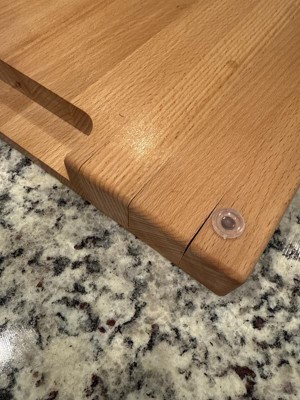 Thank you for your review and for your feedback. We apologize for your experience as this is not common. The Cutting Board is made from solid Beech Wood, which provides a long lasting cutting surface. Please email our consumer relations team directly at hello@zwillingus.com with your name and contact information, they will be able to assist you.