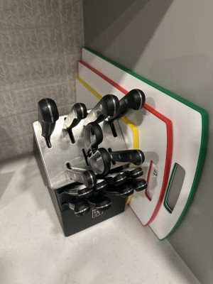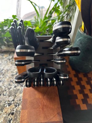 Includes: Paring Knife, Utility Knife, Prep Knife, Santoku Knife, Bread Knife, Chef Knife, Shears, Sharpening Steel, Knife Block, Steak Knives