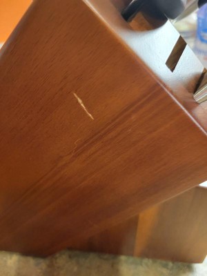 These are the sharpest knives I've ever owned. I'm amazed at the difference in my other knives and the Zwilling Pro knives. I would have given them 5 stars if not for the scratched block.