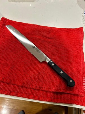 I had purchased a loaf of sour dough bread and tried every knife I owned but could not cut it properly. After much internet research, I ordered Zwilling’s 9-inch bread knife. I’m so glad I did! It cuts through tough-crusted sour dough bread like a breeze.