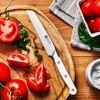 [This review was collected as part of a promotion.] I bought this knife to replace two older 5 inch tomato knives and I have to say this one is the best one I’ve ever had. Wasn’t sure I would love the white handle since it doesn’t go with any of my other knives but I don’t mind because the knife is so amazing!!