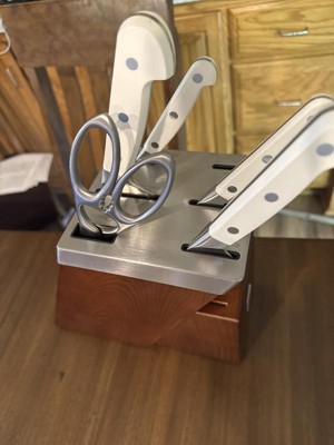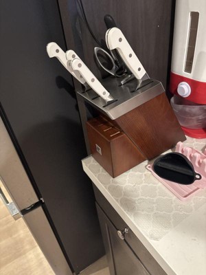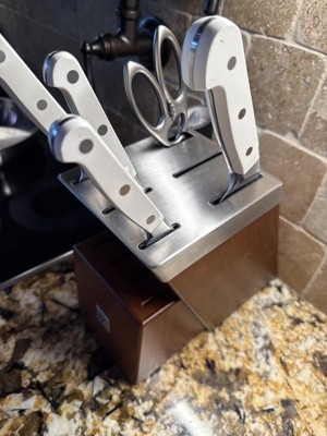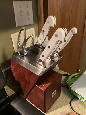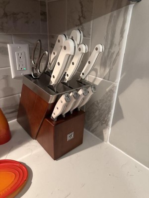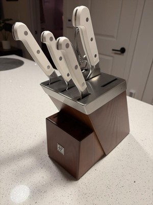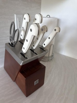 I had a previous set so I knew these knives were second to none. Using a brand new set made me realize I need to take my old set to sharpen (which I did today) and also just how amazingly sharp these knives are when properly sharpnenned. Wow they make cooking 10 times easier and much faster to boot. The white handles are the finshing touch. I just HAD to have them. Wish they made a larger compete set in white but the block does include space for steal knives amd another large knife. The 30% off for presidents day made it a no brainer