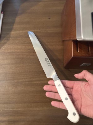Introducing an elegant new color for ZWILLING ProNow, ZWILLING Pro, the most user-friendly knife on the market, is available with elegant matte white handles. Introducing ZWILLING Pro Le Blanc. The Pro Le Blanc line is available in a variety of knife shapes, including the ever useful 4-inch paring knife and the “workhorse of the kitchen,” the 8-inch chef’s knife. Additionally, it can be purchased in two stocked knife blocks, one with self-sharpening slots. The Pro Le Blanc line also conveniently comes in our smaller, lighter design for the 7-inch chef’s and 7-inch santoku. Pro Le Blanc Slim knives