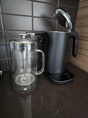 Good mornings are guaranteed with the Sorrento Plus French Press. With its Italian-designed carafe and filter press engineered by ZWILLING J.A. Henckels in Germany, this French Press has a distinctive European design that delivers a delicious brew every time.The high quality double wall borosilicate glass construction keeps coffee hot from the first cup to the last while remaining cool to the touch. Mouth-blown by skilled artisans, this stylish and durable French Press lets you brew and serve right at the table.Unlike drip coffee makers, which have paper filters that absorb the coffee beans’ flavors and oils, this French press steeps the coffee for a complex, more flavorful brew. Fast and easy to use, you’ll be a fan after the first sip.