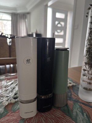 Spice it up! Bring meals to life with our manual, inverted Spice Mills.Add a bit of (hand-ground) spice to your life with the ZWILLING Spice Mills. These color-coded mills are ideal for freshly grinding salt and pepper, and perfect for creating your own signature blend of dried herbs and spices. Thoughtfully designed with an innovative upside-down design, ZWILLING Spice Mills ensure that you can grind your spices and seasonings to your liking while maintaining a clean and grind-free tabletop.Unlike traditional spice grinders, the keep-it-clean inverted design allows you to grind from the top, preventing messy residue on your table. Simply turn the non-slip mill over, evenly grind the seasoning over your dish thanks to the covered grinding adjustment, then set it upright without leaving messy grinds behind.The corrosion-resistant ceramic grinder won’t absorb flavors, so you can get the most out of your freshly-milled spices. With a simple twist function, you’ll create fresh, uniform grinds while avoiding clogs and messy spills. The grind size settings are infinitely adjustable with the turn of the dial so you can mill extremely fine powder to coarsely textured flakes. Plus, it’s super easy to refill when they’re running low thanks to the generously-sized chamber that holds up to ¾ cup of dried herbs and spices.