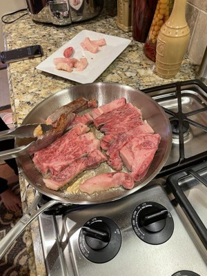 [This review was collected as part of a promotion.] Great SS pan. I mainly use it for revere searing sous vide steaks. Makes a great crust. I've also used it for chicken and pork chops. There was a little bit of a learning curve coming from my carbon steel pans but worth the effort in reducing maintenance and clean up time.