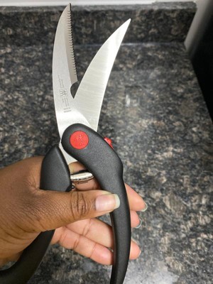 ZWILLING J.A. Heckels TWIN Deluxe Poultry Shears have a specially designed blade to cut through poultry with ease. Serrated blades make it easy to cut through bone, skin, and fat, and the blade shape will follow the contours as you cut. Dishwasher safe for easy cleaning.