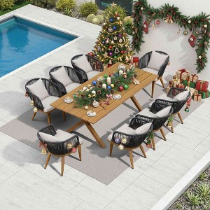 PURPLE LEAF Outdoor Dining Set 9 Pcs Patio Aluminium Table and Rope Weave Chairs Included Cushions for Backyard Decor Kitchen