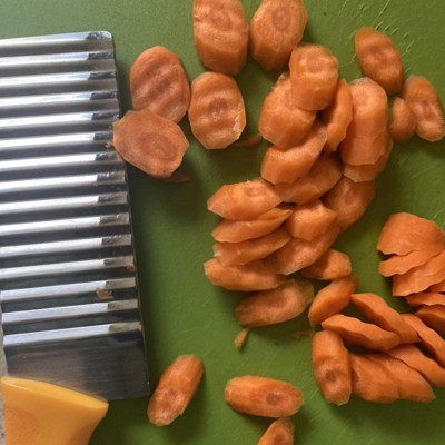 Crinkle cutter does the job. Great for cutting veggies for a charcuterie board, and homemade French fries, or even shaping fruit for the kids. Good gripping handle, large, and the quality is there.