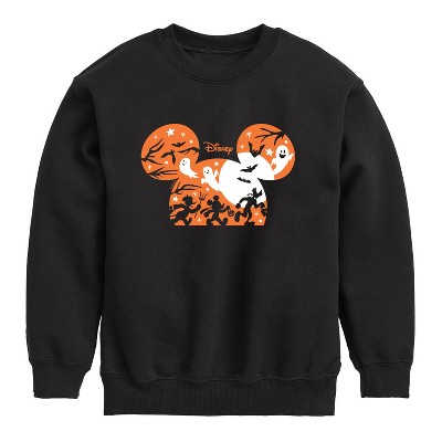Boys' - Disney - Halloween Mickey Head Silhouette Graphic Long Sleeve Fleece Sweatshirt