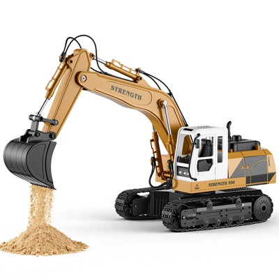 Remote Control Excavator Toy 11-Channel, RC Construction Vehicle with Metal Bucket, Water Spray, LED Lights and Sounds for Boys 8+ and Adults