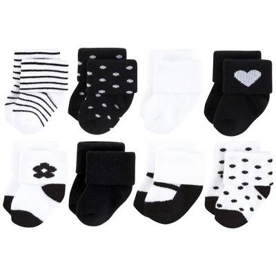 Hudson Baby Infant Girls Cotton Rich Newborn and Terry Socks 8-Pack, Black Flower
