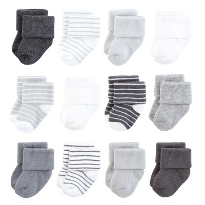 Hudson Baby Infant Baby Cotton Rich Newborn and Terry Socks 12-Pack, Gray White Stripe