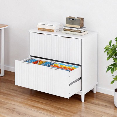 Karl Home2 Drawer Fluted Wooden File Cabinet Wide Drawer Design