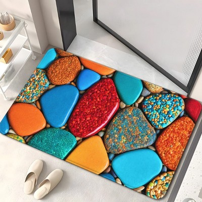 Lomsoe 1pc Stone Patterned Door Mats, Polyester Rug Suitable for Bedroom, Living Room Entrance, Camping, Picnic Rugs, Outdoor Mat.