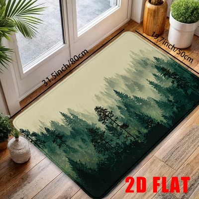 Lomsoe 1pc Soft Flannel Mat Featuring Lush Green Forest Fog Design, Perfect for Indoor and Outdoor Use, Living Rooms, Bedrooms, Kitchens.